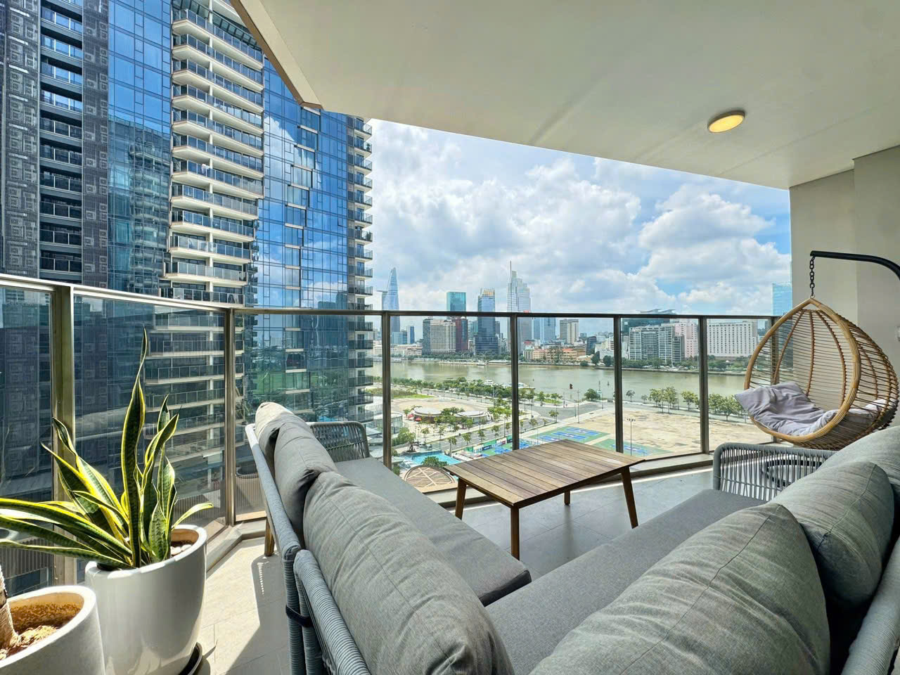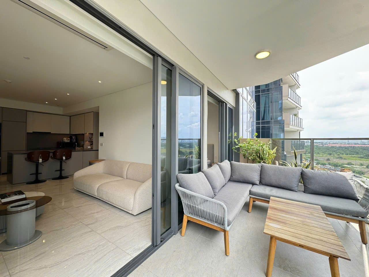 Một trong những điểm nổi bật của căn hộ là ban công rộng, nơi cư dân có thể thư giãn, thưởng thức cà phê buổi sáng hoặc tận hưởng không khí trong lành cùng tầm nhìn thoáng đãng ra khu vực xung quanh. Hệ cửa kính lớn giúp căn hộ luôn tràn ngập ánh sáng tự nhiên, mang đến cảm giác thoải mái và gần gũi với thiên nhiên.
