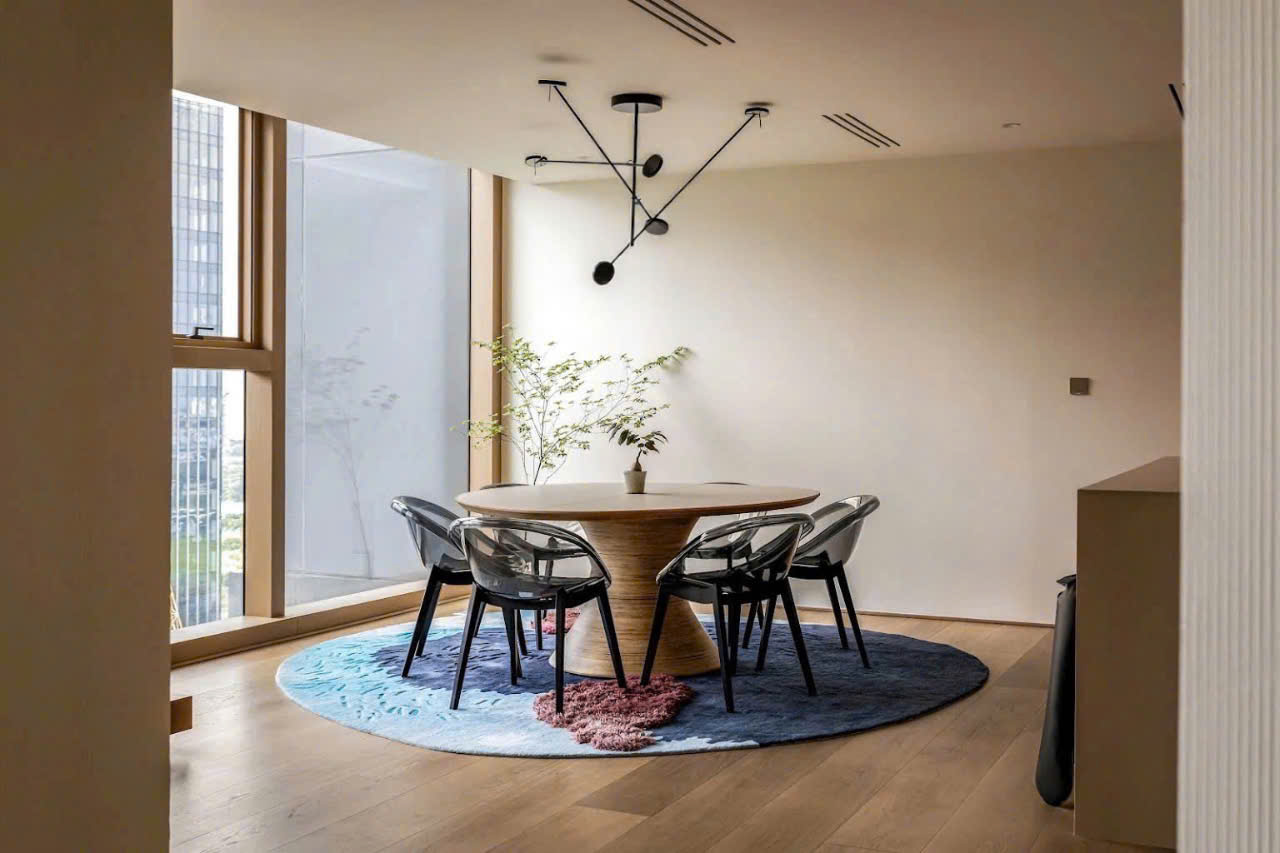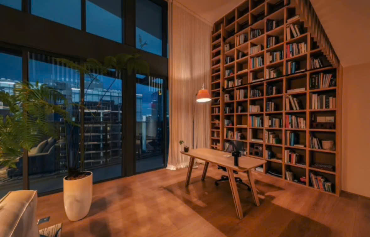 Không gian tầng trên mang tính riêng tư cao, phù hợp làm phòng ngủ master, phòng làm việc hoặc lounge thư giãn. View panorama tuyệt đẹp, bao quát toàn cảnh khu đô thị Thủ Thiêm và trung tâm thành phố, đặc biệt ấn tượng cả ban ngày lẫn ban đêm.