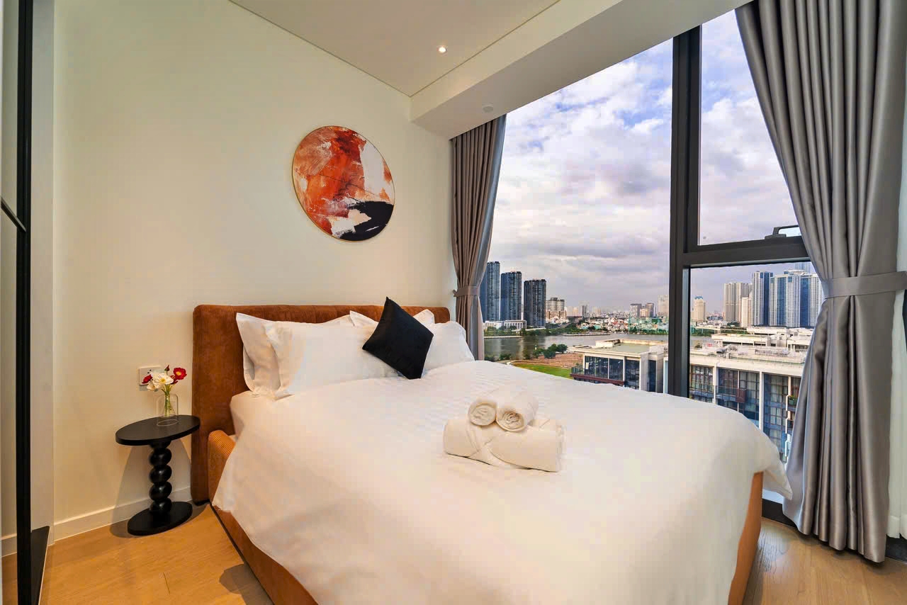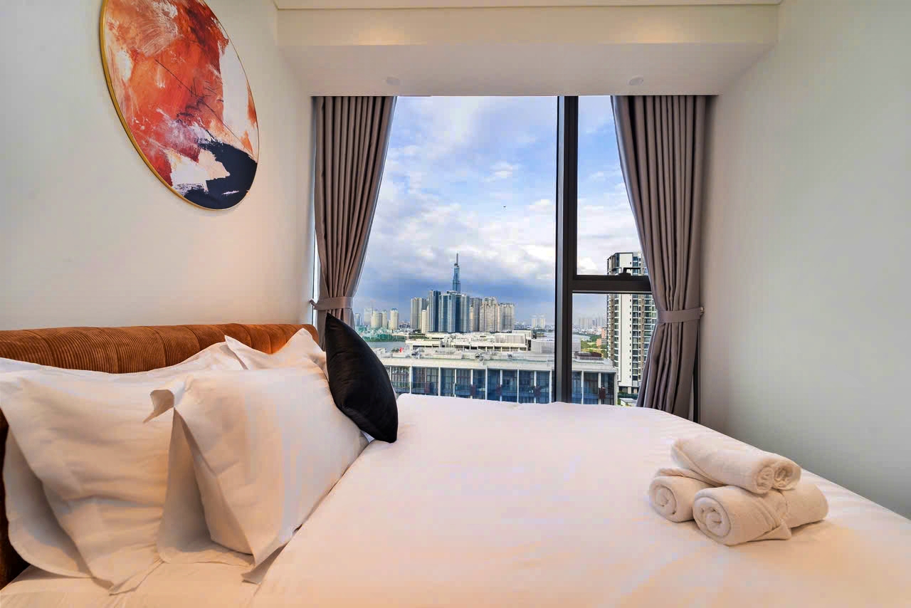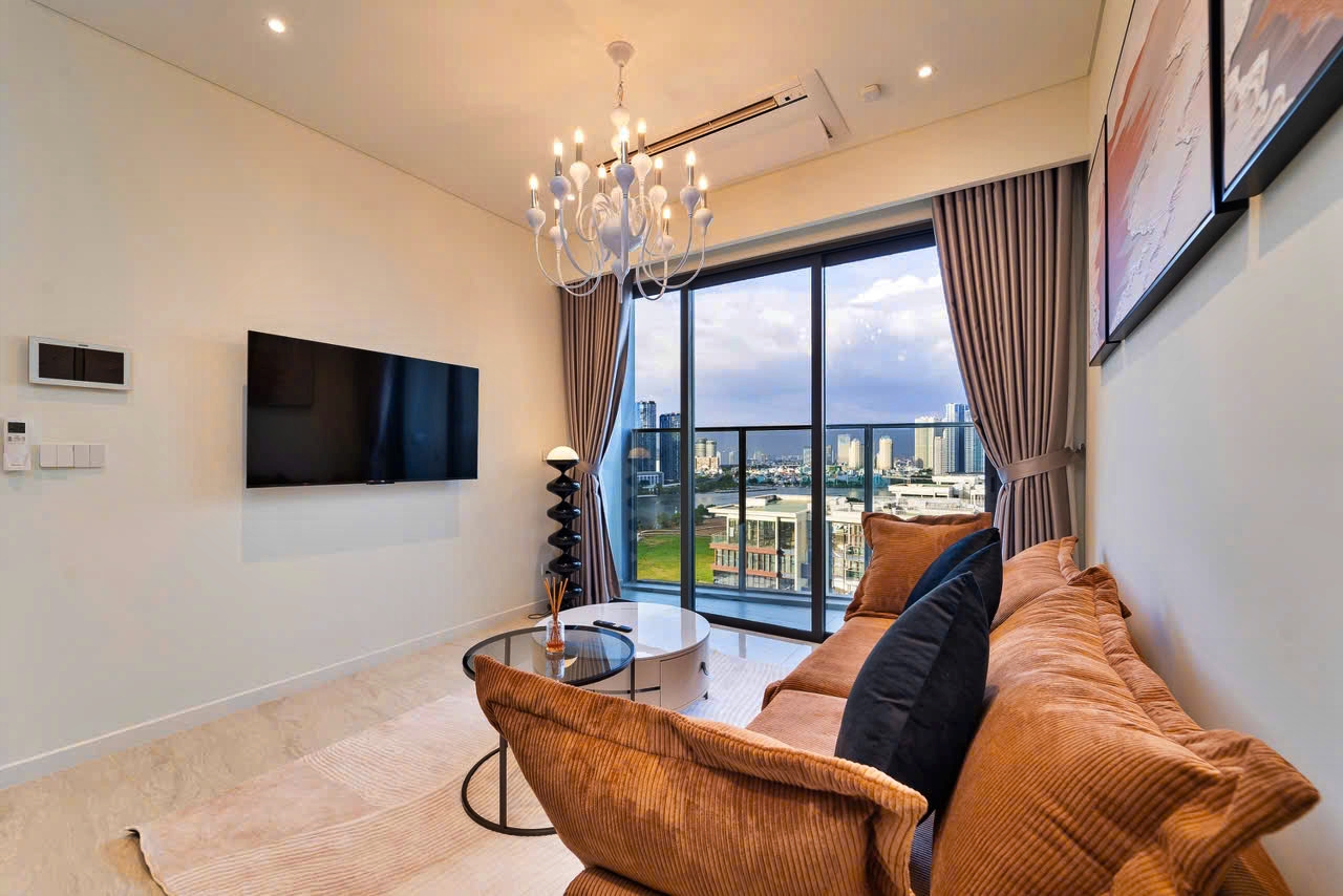 Căn hộ cao cấp The Opera Residence - The Metrpole Thu Thiêm cho thuê, tọa lạc tại lầu cao, tháp B, view sông và quận 1.