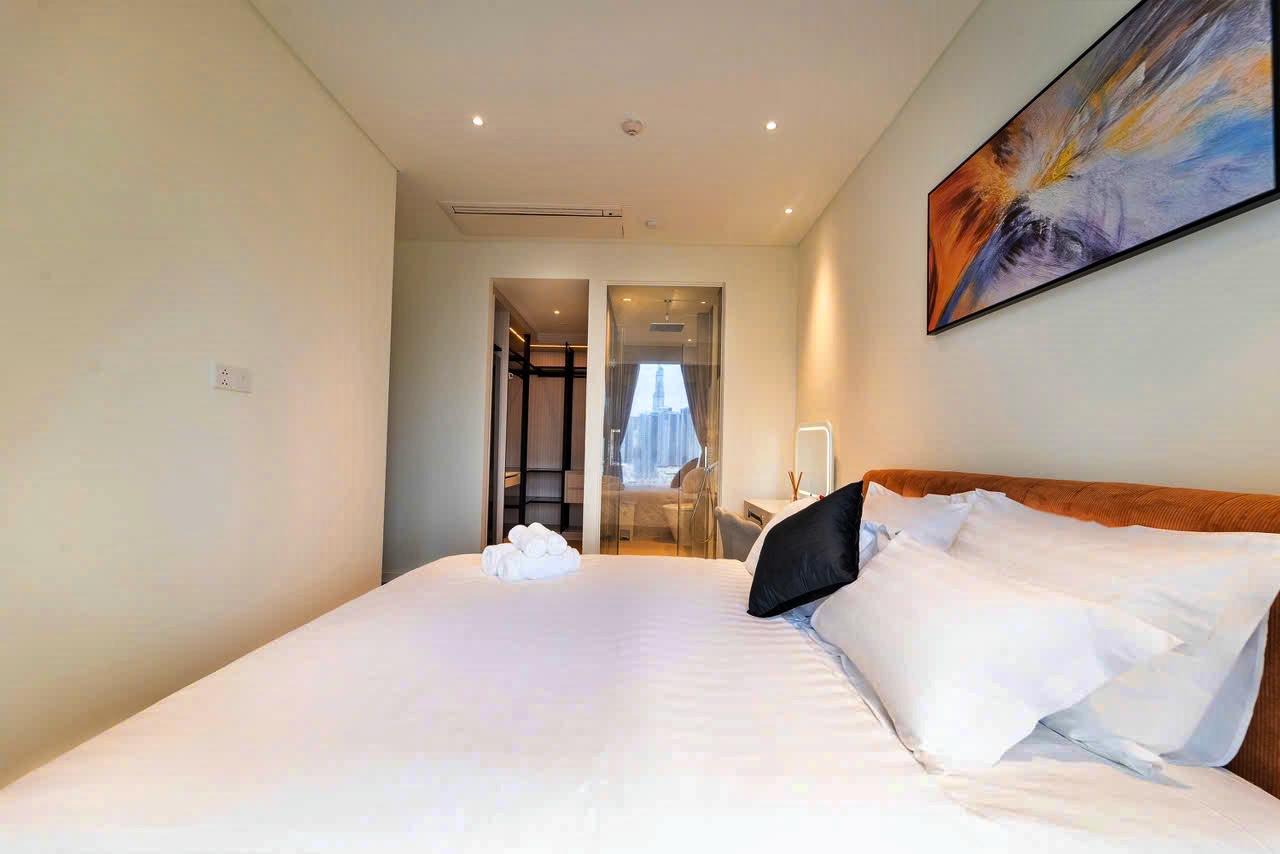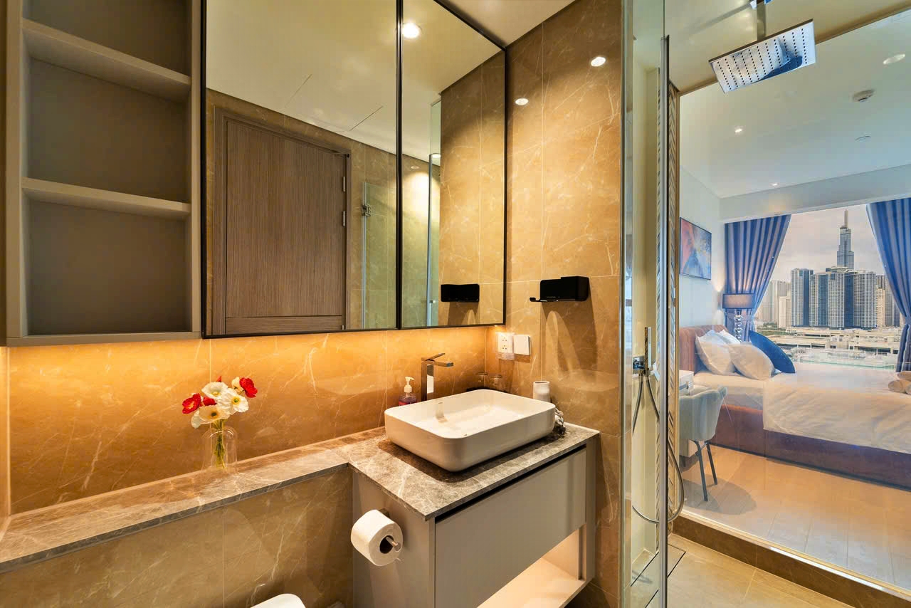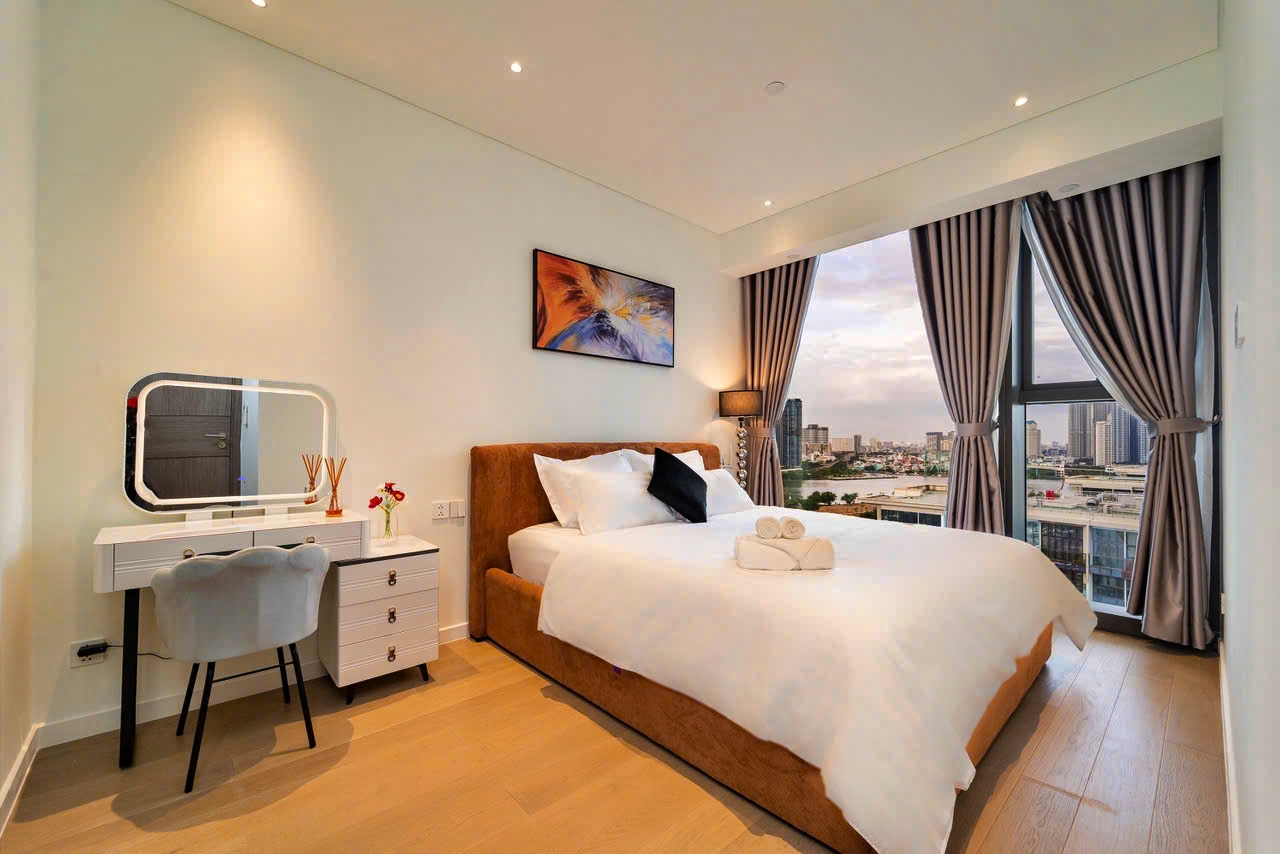 Căn hộ cao cấp The Opera Residence - The Metrpole Thu Thiêm cho thuê, tọa lạc tại lầu cao, tháp B, view sông và quận 1.