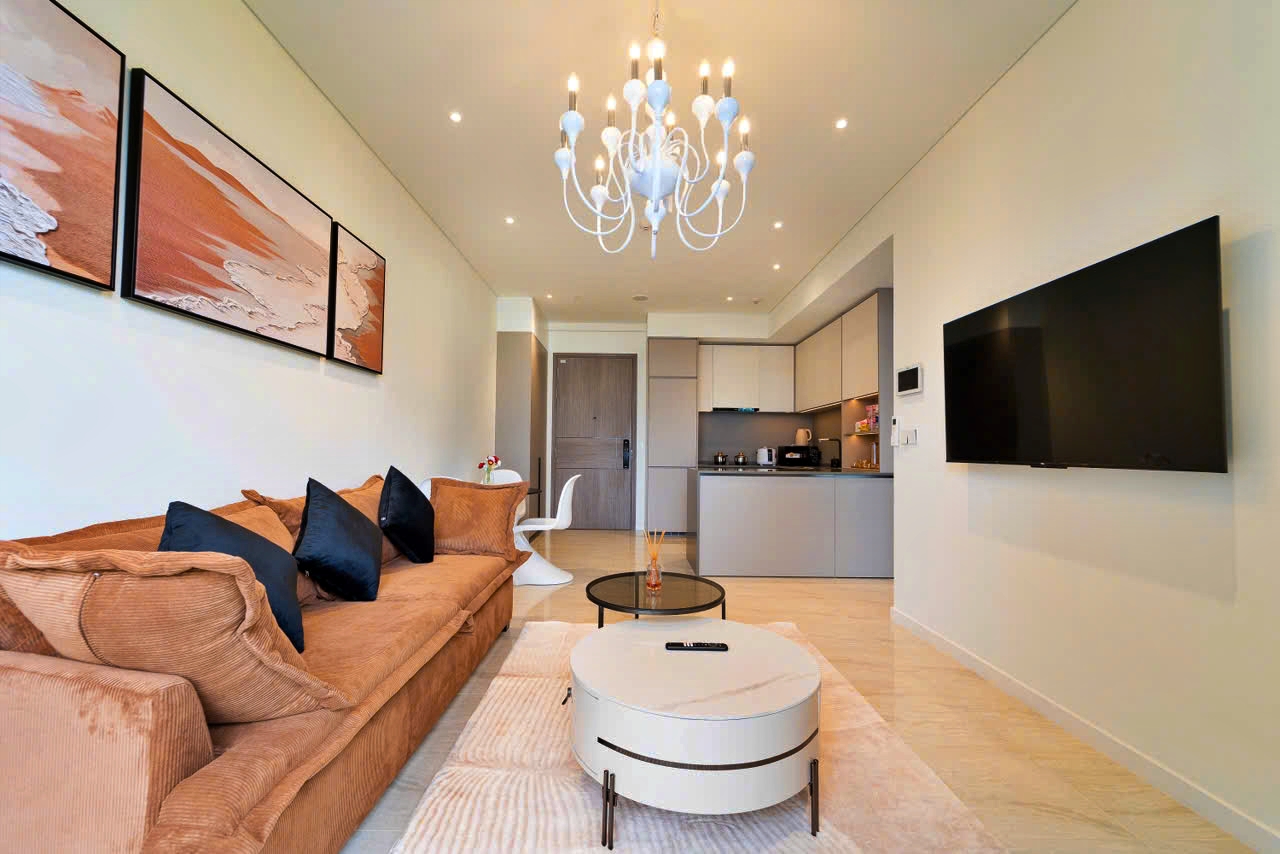 Căn hộ thiết kế nội thất hiện đại, layout hợp lý, nội thất tone màu sáng nhưng không kém phần ấm áp.