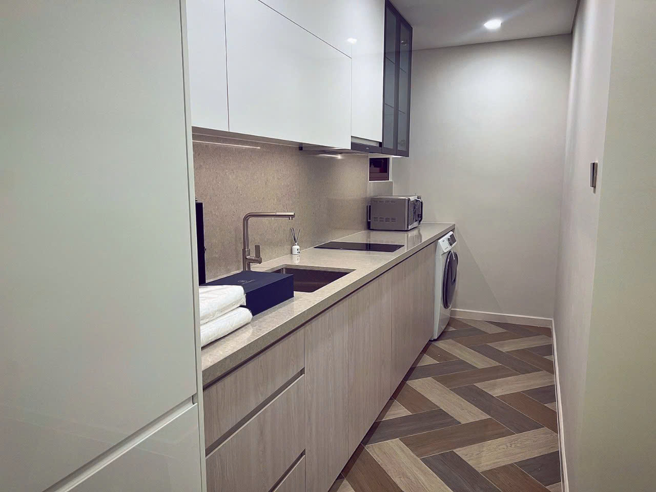 Căn hộ được thiết kế tinh tế, đầy đủ nội thất hiện đại và cao cấp, bố trí khoa học, tối ưu công năng nhưng vẫn đảm bảo sự thoáng đãng và sang trọng. Phòng khách ấm cúng, kết nối hài hòa với khu bếp và bàn ăn, tạo nên không gian sinh hoạt tiện nghi và đẳng cấp.