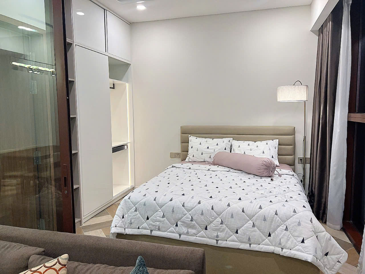 Phòng ngủ riêng tư, giường lớn, tủ âm tường rộng rãi, mang đến cảm giác thư giãn tuyệt đối. Toàn bộ căn hộ sử dụng vật liệu và thiết bị cao cấp, phù hợp cho khách ở lâu dài.