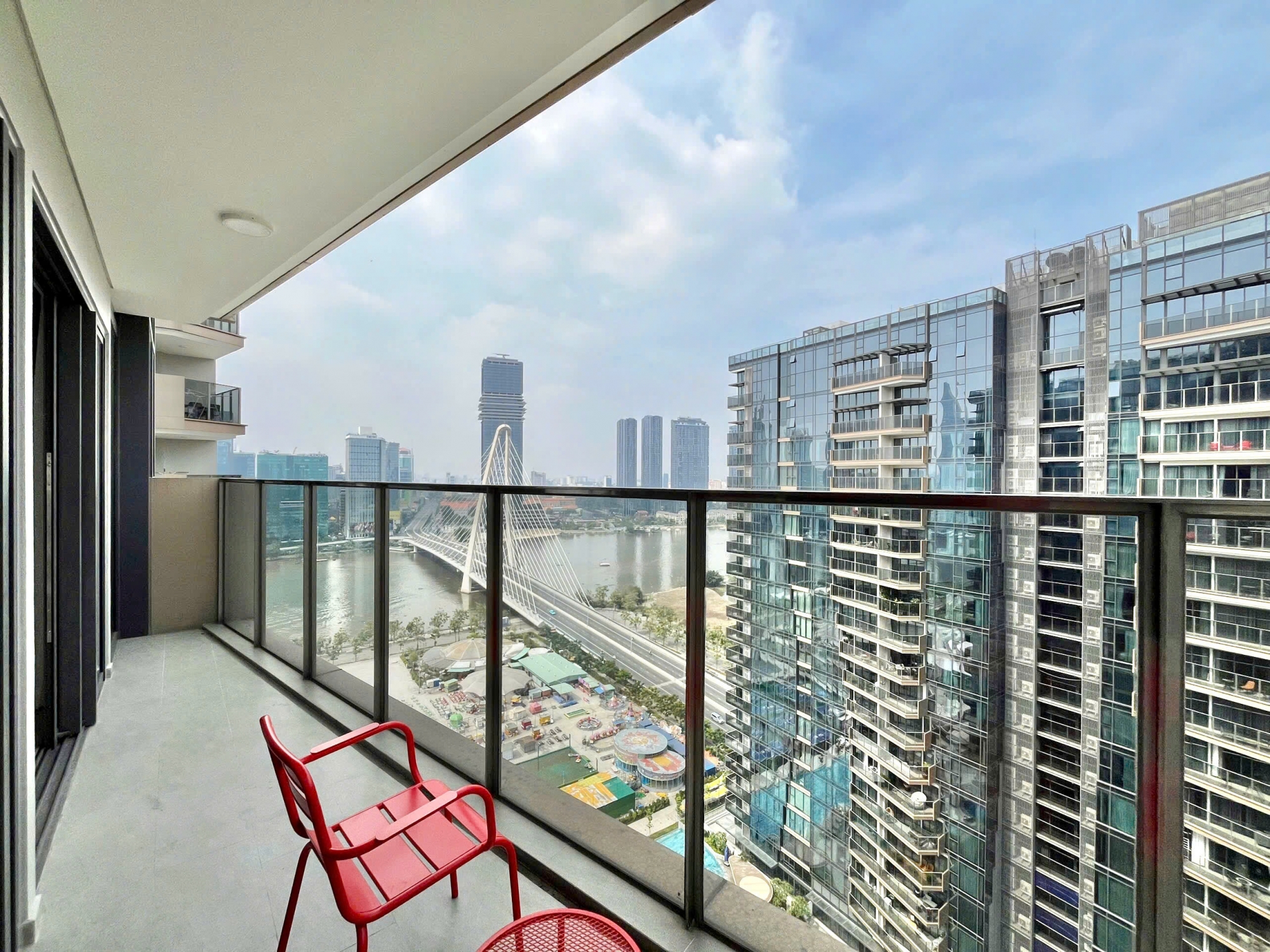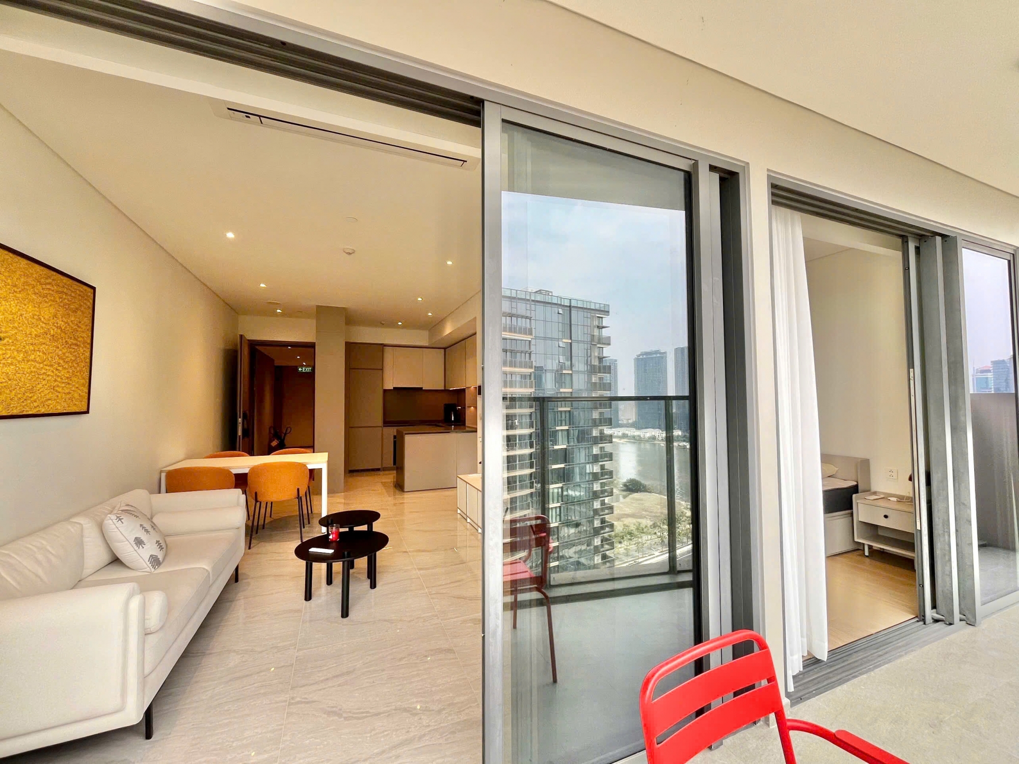 Căn hộ có diện tích 80m², thiết kế tối ưu với 2 phòng ngủ – 2 phòng tắm, không gian sinh hoạt rộng rãi, thoáng đãng và tràn ngập ánh sáng tự nhiên. Ban công lớn mở ra view sông tuyệt đẹp, trực diện sông Sài Gòn và khu đô thị Thủ Thiêm hiện đại, mang lại cảm giác thư giãn tuyệt đối cả ngày lẫn đêm.