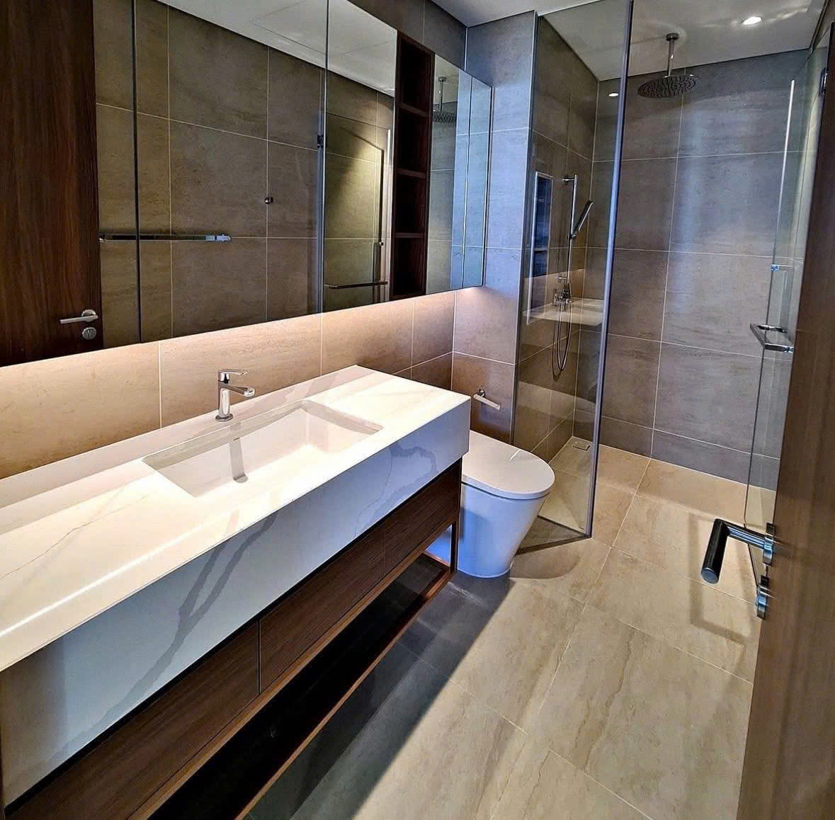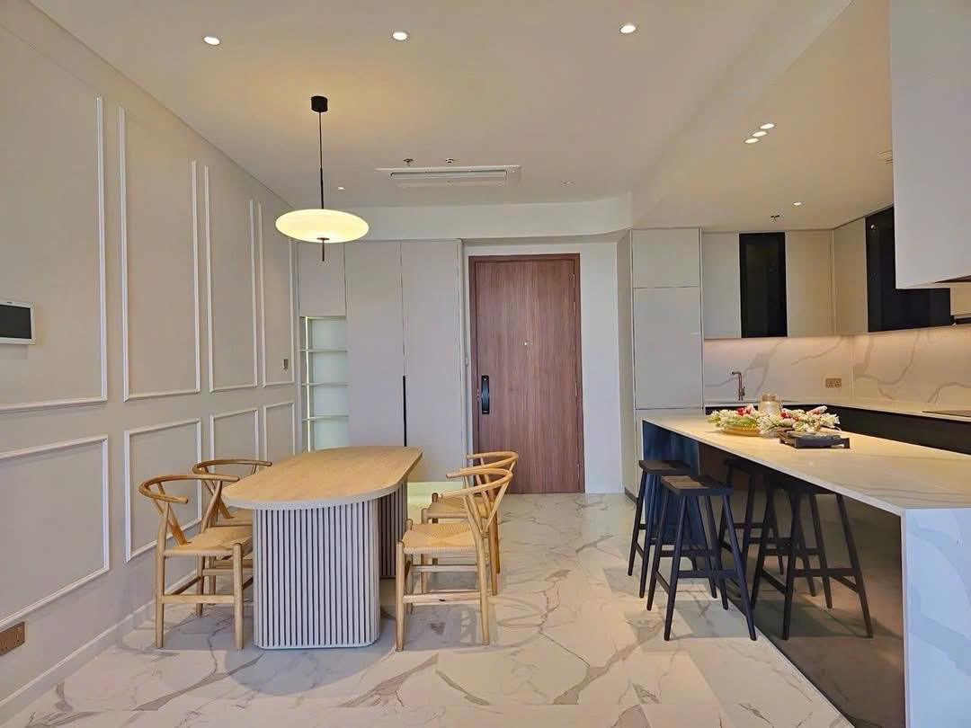 Căn hộ nằm tại The Crest – Metropole Thủ Thiêm, khu căn hộ cao cấp với thiết kế hiện đại và không gian sống sang trọng. Căn hộ sở hữu phong cách nội thất tinh tế, gam màu sáng kết hợp vật liệu cao cấp, mang lại cảm giác ấm cúng và đẳng cấp. Không gian phòng khách rộng rãi kết nối khu bếp và bàn ăn tạo sự liền mạch.