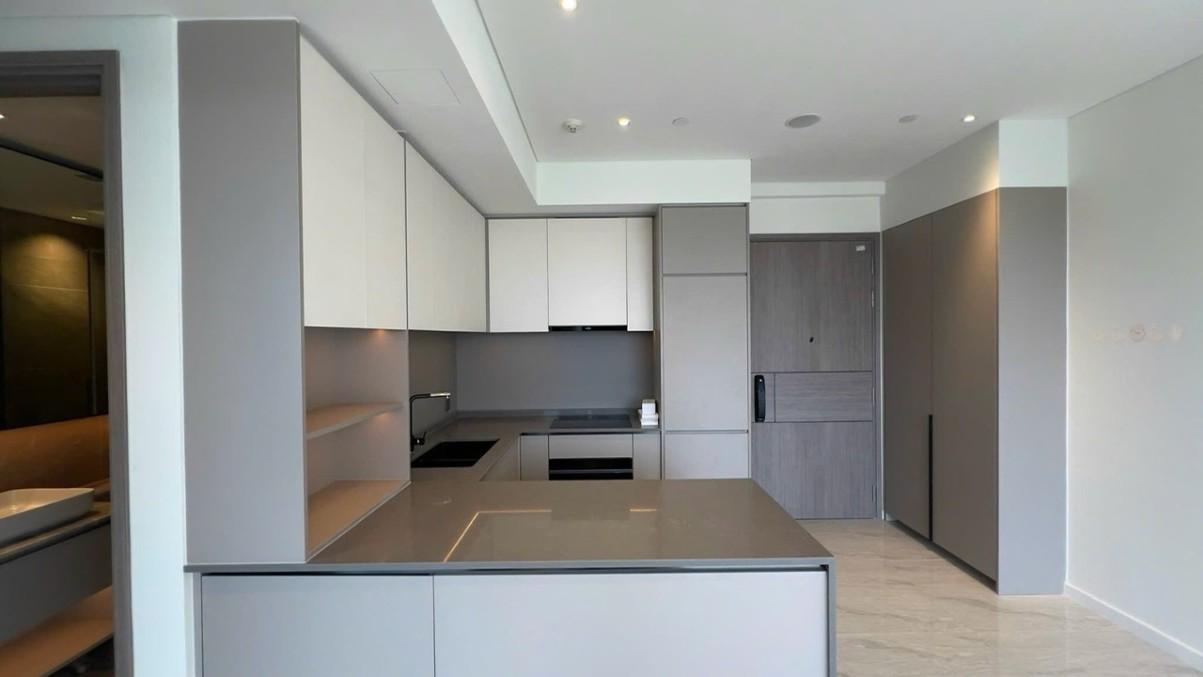 Căn hộ có thiết kế hiện đại, không gian được bố trí khoa học với 2 phòng ngủ riêng biệt, phòng khách rộng rãi liên thông khu bếp và bàn ăn, tạo cảm giác thoáng đãng và sang trọng. Toàn bộ căn hộ được trang bị full nội thất cao cấp, lựa chọn kỹ lưỡng từ sofa, bàn ăn, giường ngủ, tủ quần áo đến hệ tủ bếp và thiết bị điện tử, phù hợp cho khách thuê ở lâu dài hoặc chuyên gia nước ngoài.