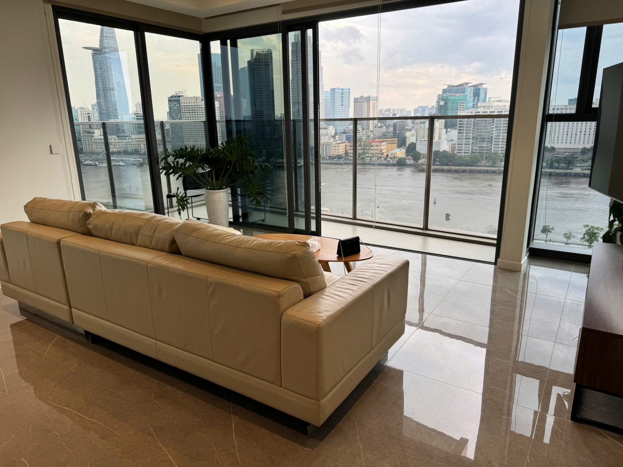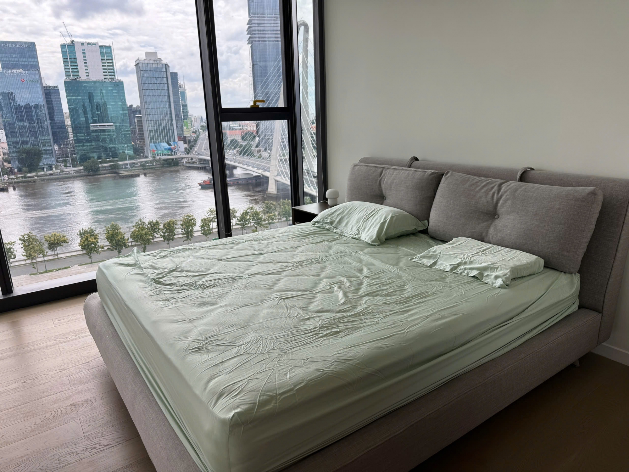 Điểm nổi bật của căn hộ là ban công rộng với view sông trực diện, đón gió mát tự nhiên và ánh sáng chan hòa suốt cả ngày, mang đến trải nghiệm sống thư thái giữa trung tâm thành phố.
