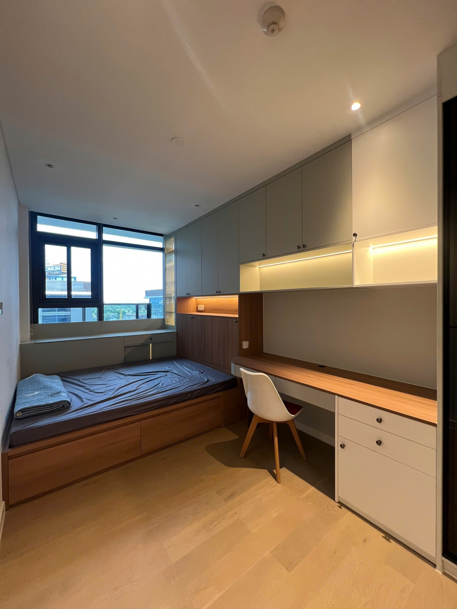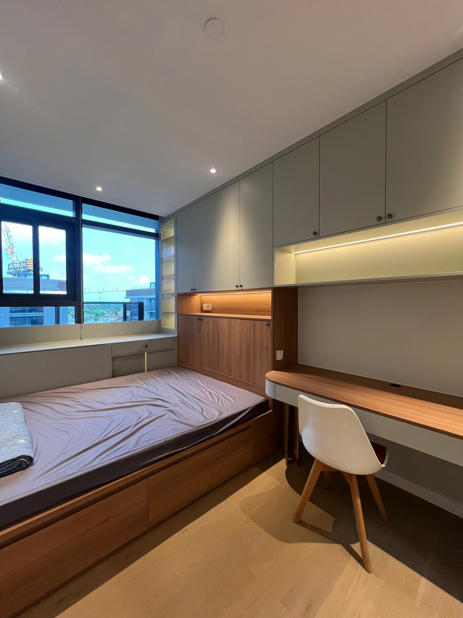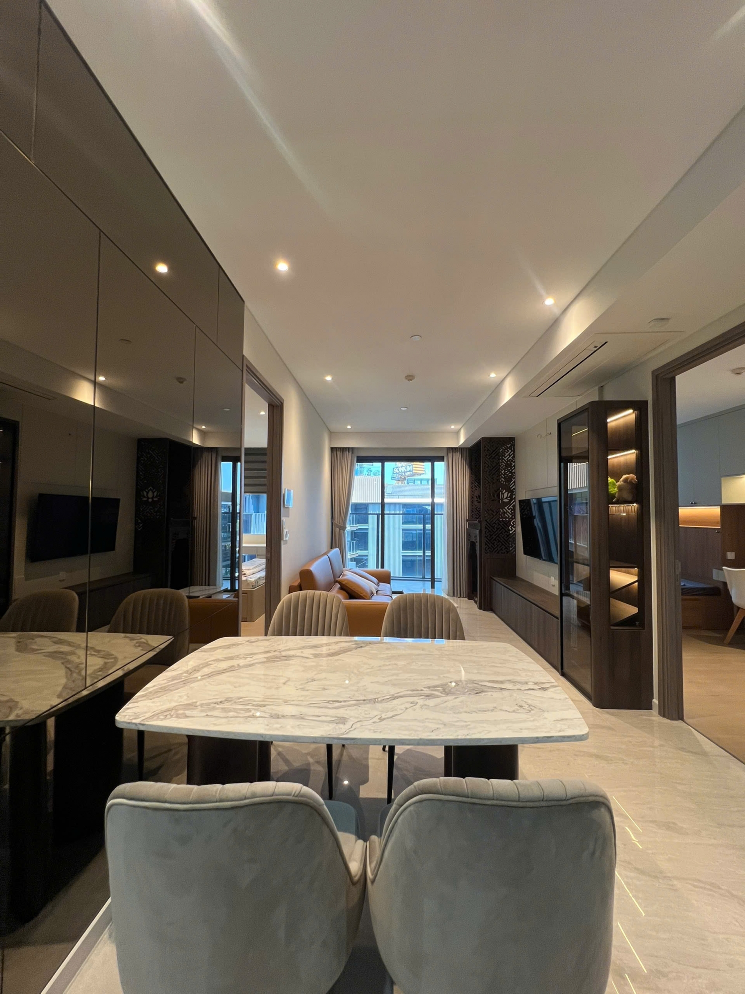 Phòng khách thoáng đãng, sàn đá sáng màu, kết hợp ánh sáng tự nhiên tạo cảm giác rộng rãi và ấm cúng. Khu bếp gọn gàng, tiện nghi; các phòng ngủ yên tĩnh, riêng tư, phù hợp cho gia đình nhỏ hoặc chuyên gia nước ngoài.
