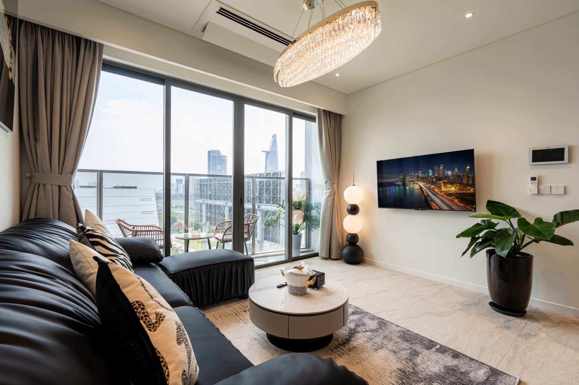 Căn hộ 2 phòng ngủ được thiết kế theo phong cách hiện đại, sang trọng với không gian rộng rãi, bố trí hợp lý, đón ánh sáng tự nhiên tốt. Nội thất được trang bị đầy đủ, đồng bộ và cao cấp, mang đến trải nghiệm sống tiện nghi, thoải mái và đẳng cấp. View thoáng giúp căn hộ luôn sáng và dễ chịu, phù hợp cho gia đình nhỏ hoặc chuyên gia nước ngoài.