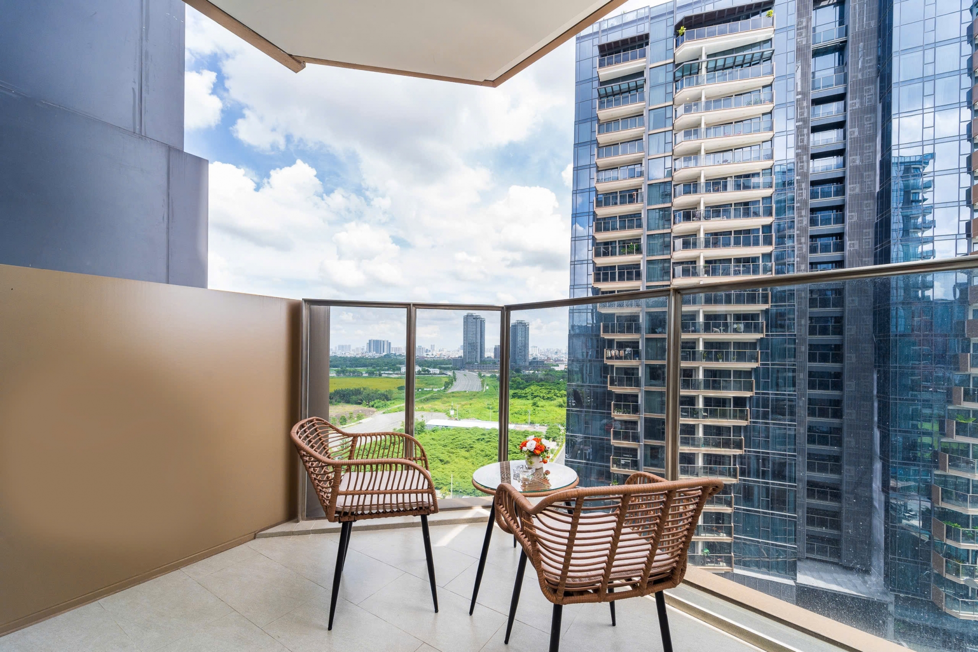 Hệ cửa kính lớn mở ra ban công riêng giúp căn hộ đón ánh sáng tự nhiên và gió mát Nội thất được trang bị đầy đủ cao cấp với phong cách hiện đại phù hợp cho khách thuê chỉ cần dọn vào ở ngay Phòng ngủ riêng tư thoáng sáng mang lại sự thoải mái trong quá trình sinh hoạt