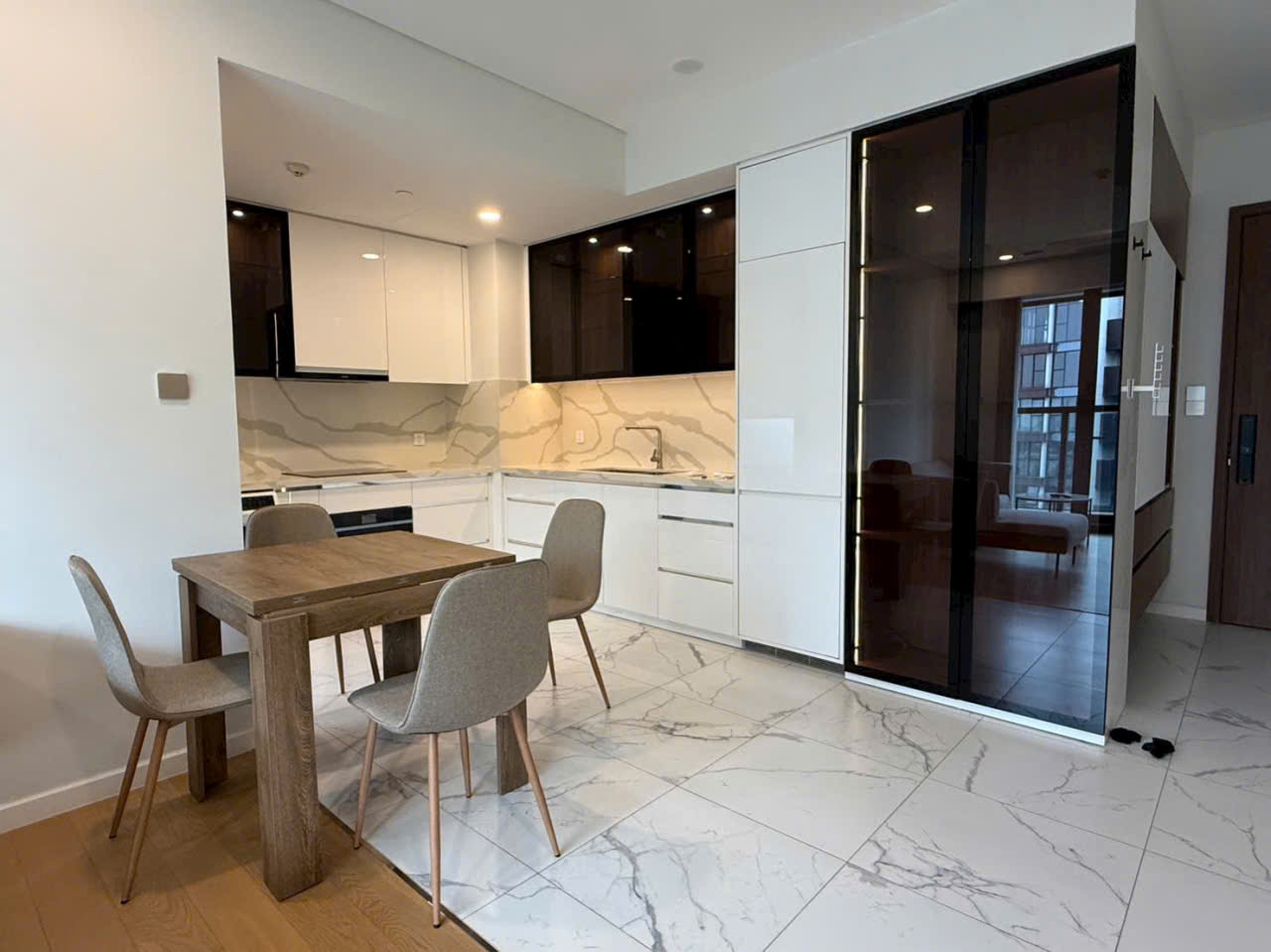 Căn hộ được thiết kế 2 phòng ngủ, không gian phòng khách và bếp mở tạo cảm giác rộng rãi, thoáng đãng và tràn ngập ánh sáng tự nhiên. Từ căn hộ, cư dân có thể ngắm trọn view sông Sài Gòn và cầu Ba Son, mang lại cảm giác thư giãn, yên bình giữa trung tâm thành phố sôi động.