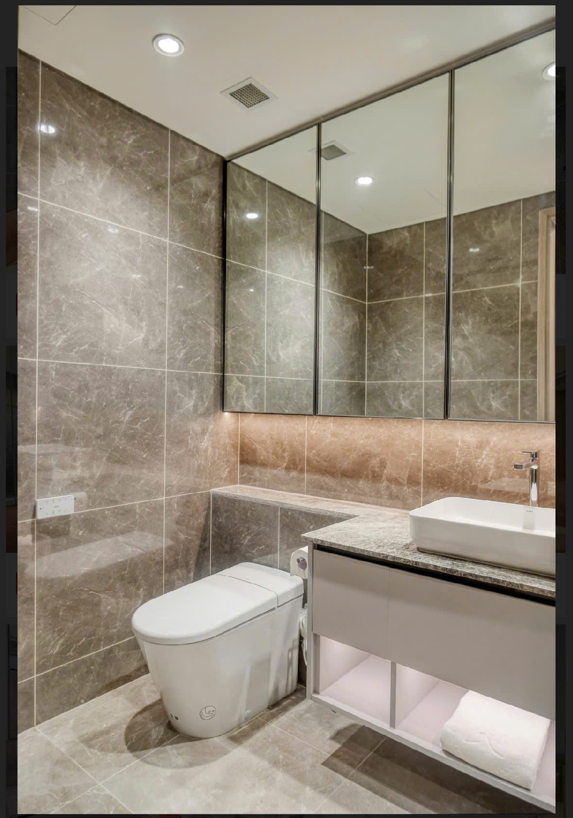 Khu vực phòng ngủ gồm 3 phòng ngủ rộng, trong đó phòng ngủ chính có nhà vệ sinh riêng, tủ quần áo lớn và cửa kính đón ánh sáng tự nhiên. Tổng cộng 2 phòng vệ sinh được hoàn thiện chỉn chu, sạch sẽ và tiện nghi. Ban công và hệ cửa kính lớn giúp căn hộ luôn tràn ngập ánh sáng, đồng thời mang đến tầm nhìn thoáng, yên tĩnh và riêng tư.