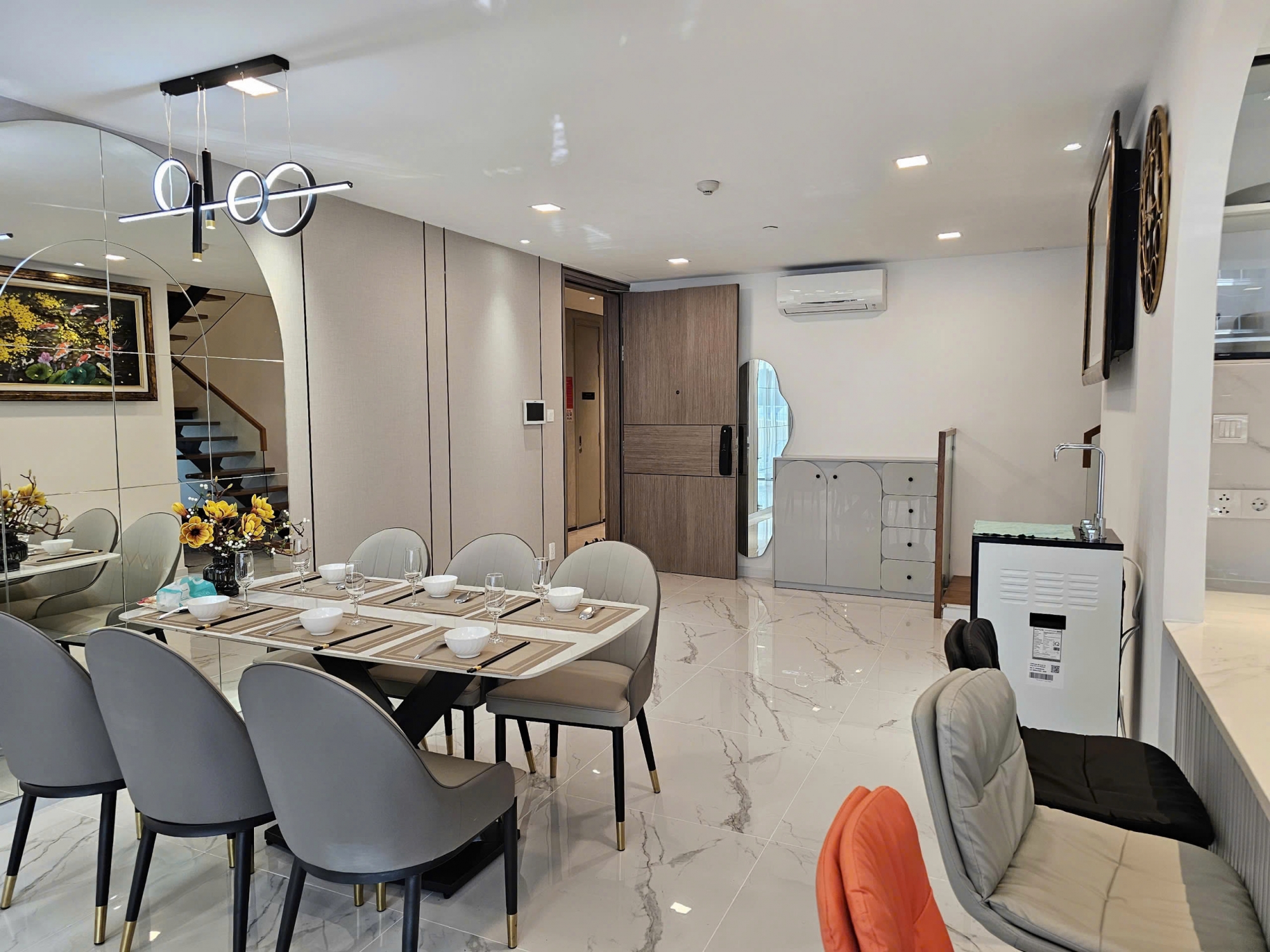 This refined 2-bedroom apartment at The Metropole – Opera offers a modern, elegant living space with carefully selected high-end furnishings. The open-plan layout between the living room, dining area, and kitchen creates a bright and airy atmosphere, enhanced by large glass windows that invite abundant natural light.