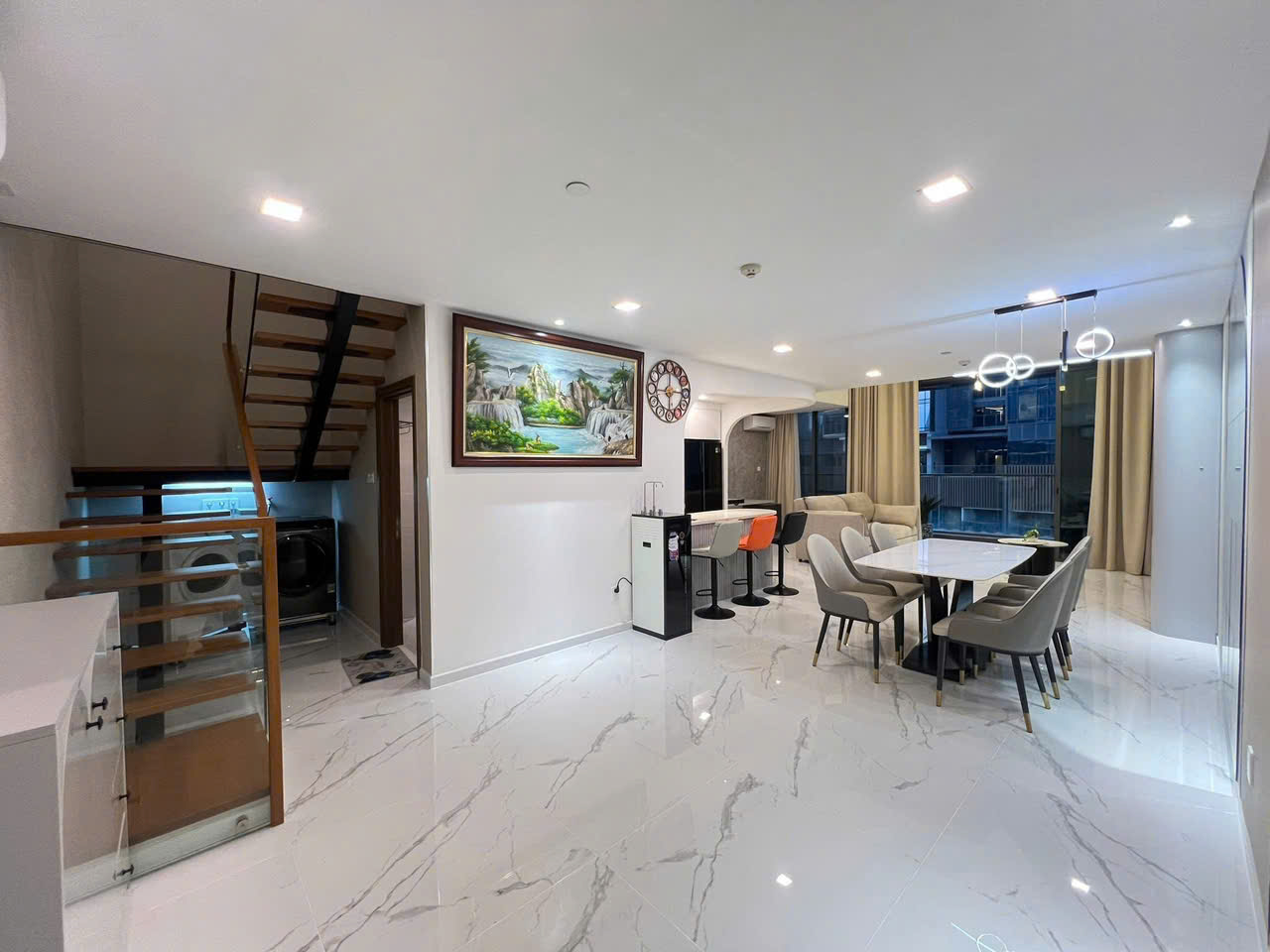Điểm nổi bật là view đẹp, thoáng, đón ánh sáng tự nhiên tốt, giúp không gian luôn sáng sủa và dễ chịu. Thiết kế loft kết hợp ánh sáng tự nhiên tạo nên phong cách sống rất riêng và đẳng cấp.