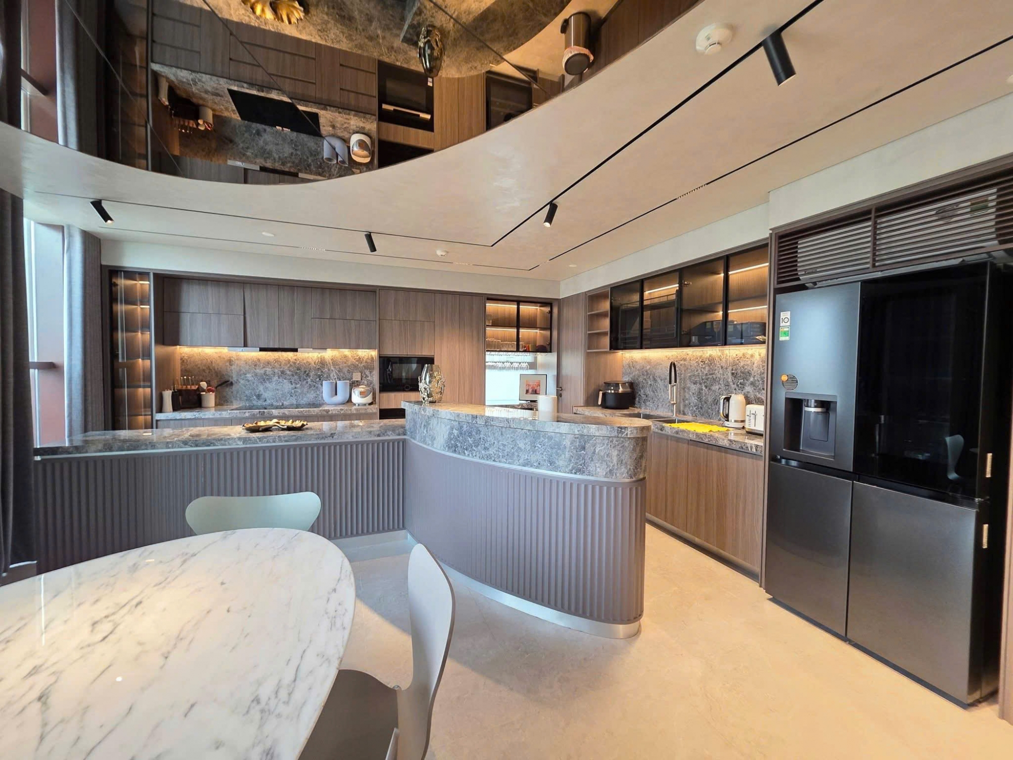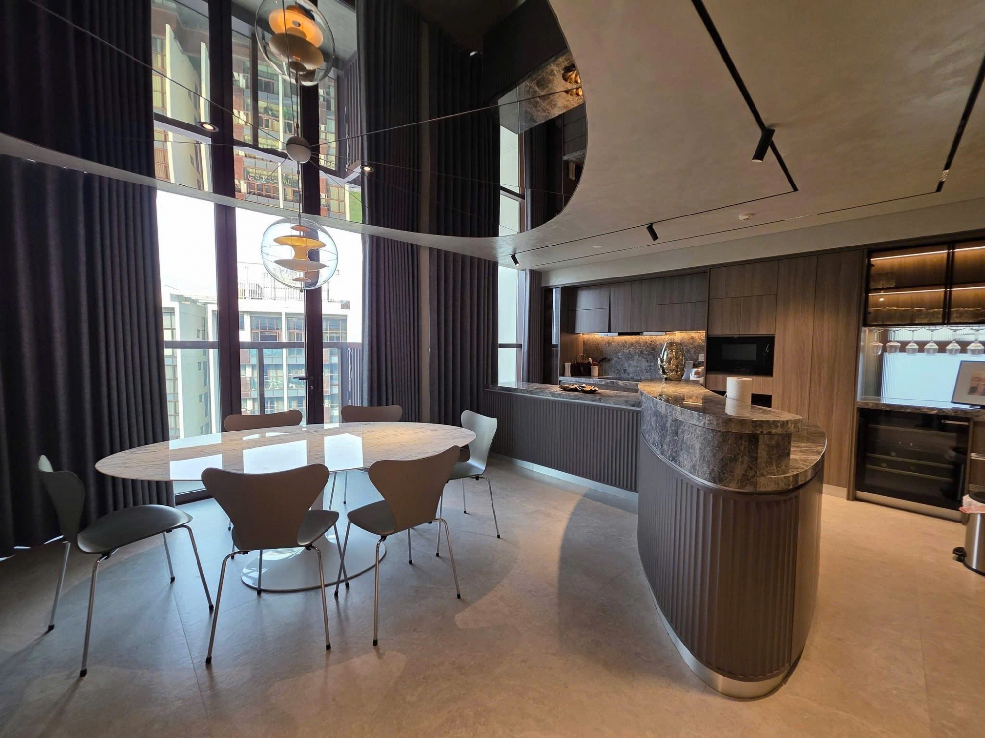 公寓配备 全套高端定制家具,从材质到细节均经过精心挑选,兼顾美感与实用性。客厅、餐厅及厨房空间宽敞,非常适合家庭居住或私人会客。